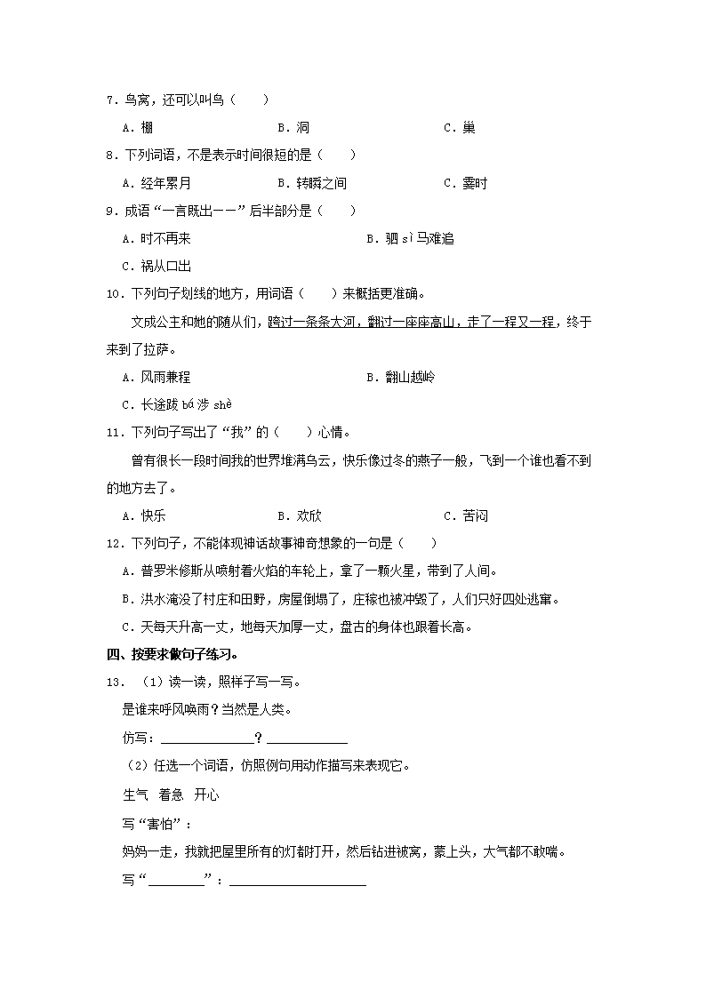- 2023-2024开云kaiyun(中国)年广东省佛山市三水区四年级下开云kaiyun(中国)期期末语文真题及答案