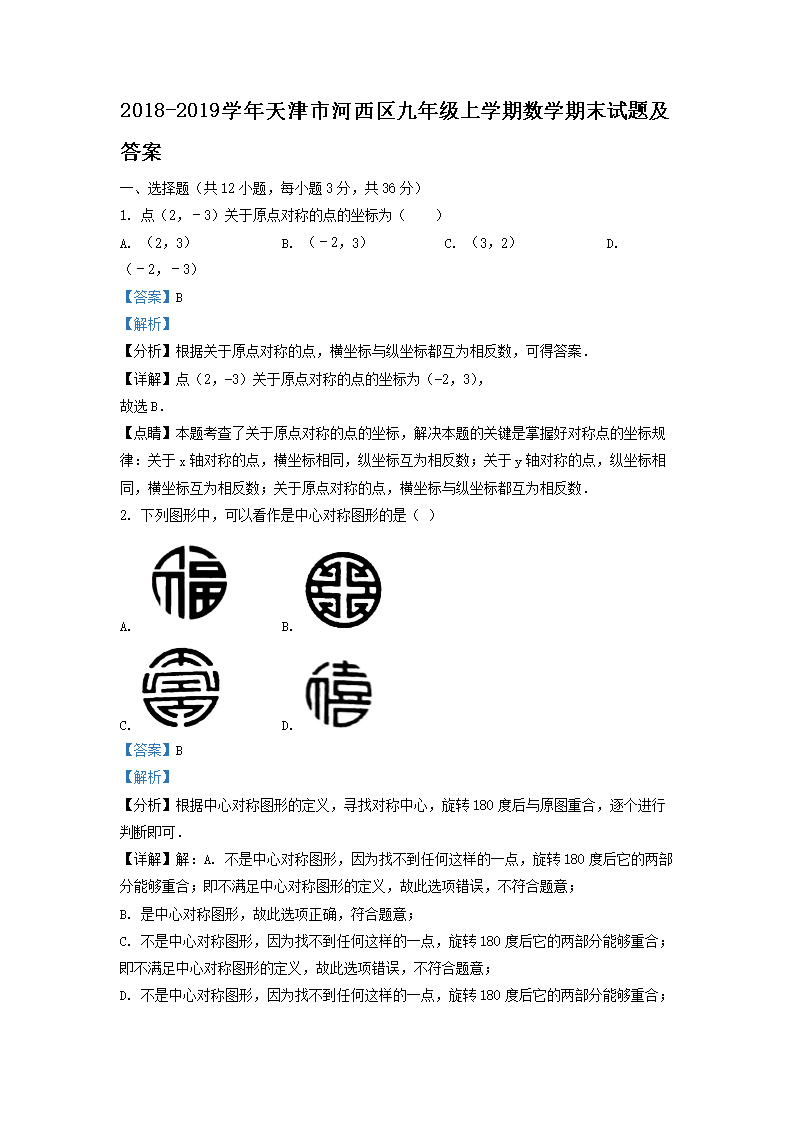 时间:2024-10-14 13:20:00 来源:开云网页版 [字体:小 中 大]【文档名称】 2018-2019开云kaiyun(中国)年天津市河西区九年级上开云kaiyun(中国)期数开云kaiyun(中国)期末试题及答案(Word版).doc