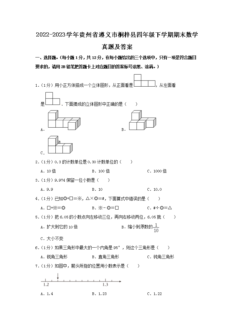 时间:2024-10-15 11:21:00 来源:开云网页版 [字体:小 中 大]【文档名称】 2022-2023开云kaiyun(中国)年贵州省遵义市桐梓县四年级下开云kaiyun(中国)期期末数开云kaiyun(中国)真题及答案(Word版).doc