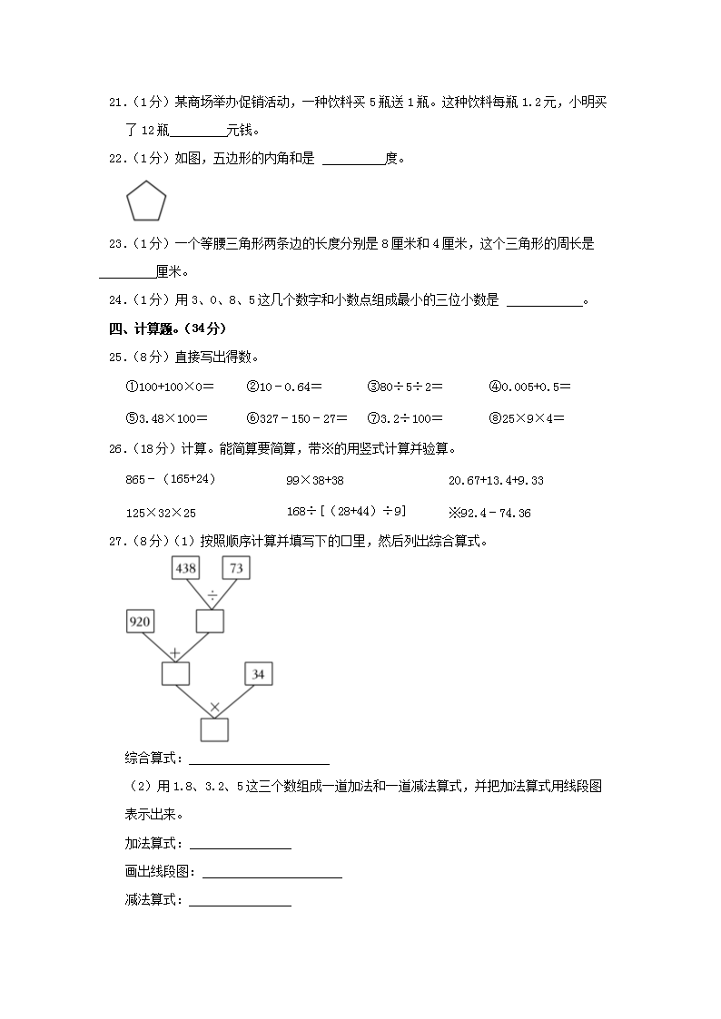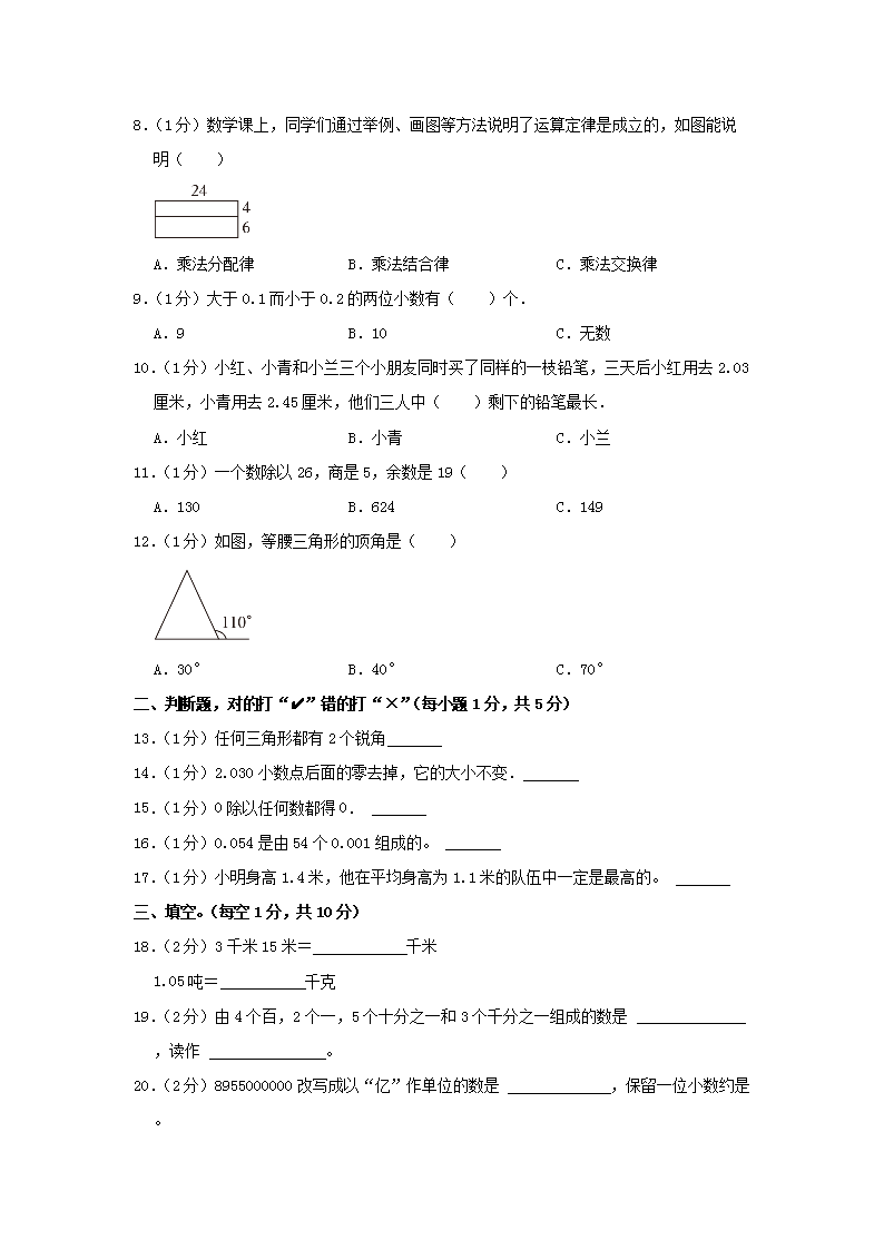 - 查看小开云kaiyun(中国)四年级全部真题>>