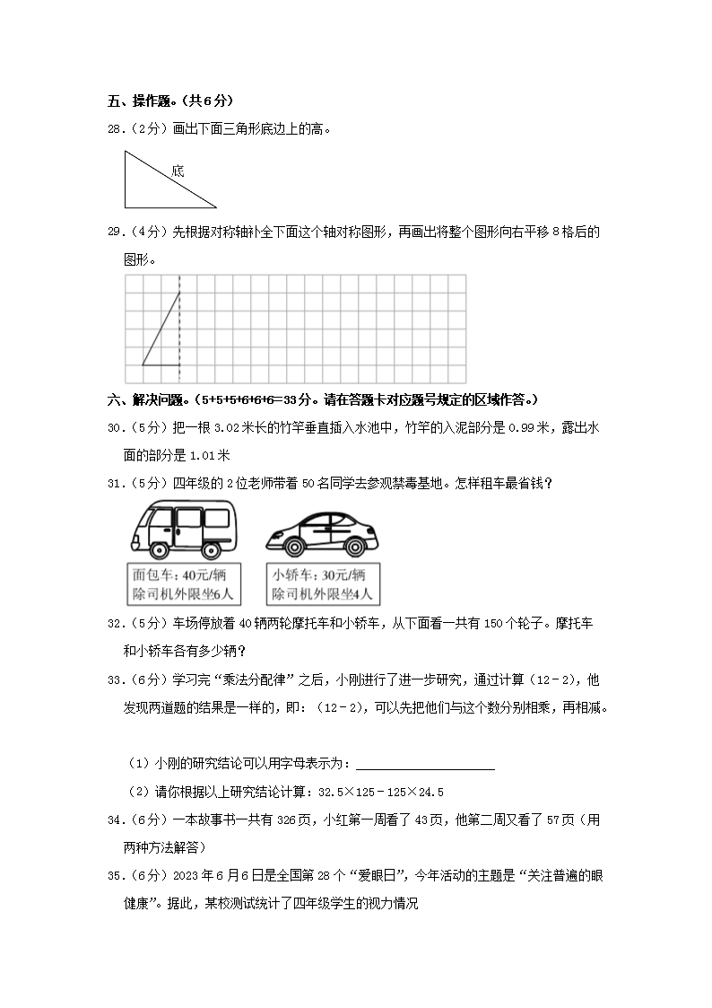 - 2023-2024开云kaiyun(中国)年广东省湛江市四年级下开云kaiyun(中国)期期末数开云kaiyun(中国)真题及答案