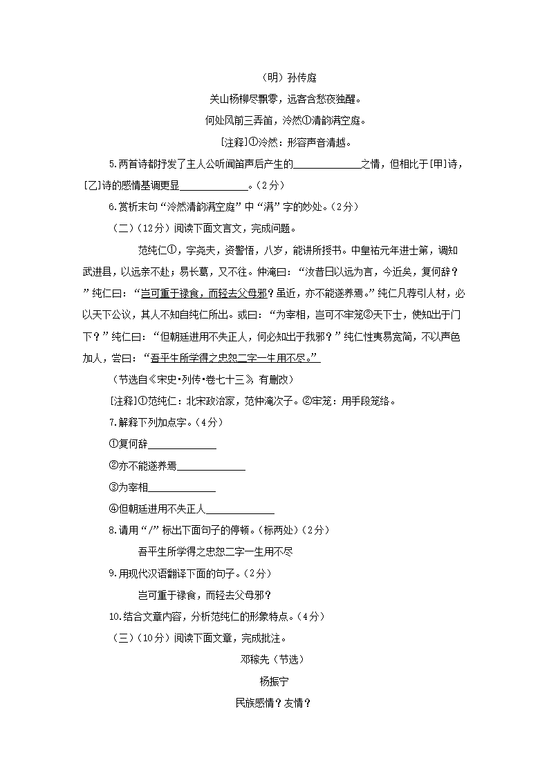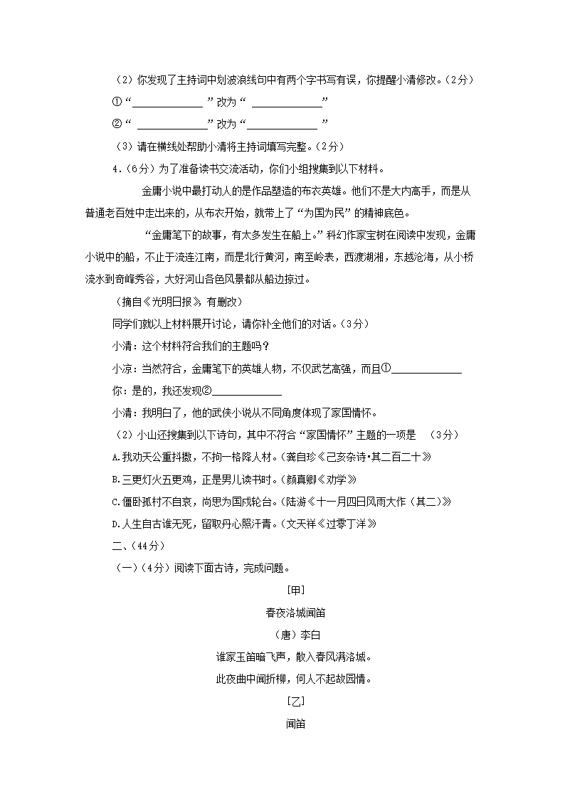- 2023-2024开云kaiyun(中国)年江苏南京溧水区七年级下册语文四月月考试卷及答案