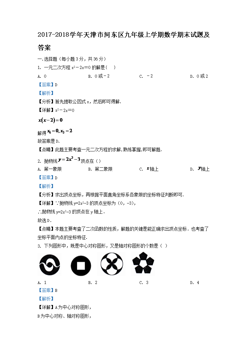 时间:2024-10-23 12:58:00 来源:开云网页版 [字体:小 中 大]【文档名称】 2017-2018开云kaiyun(中国)年天津市河东区九年级上开云kaiyun(中国)期数开云kaiyun(中国)期末试题及答案(Word版).doc