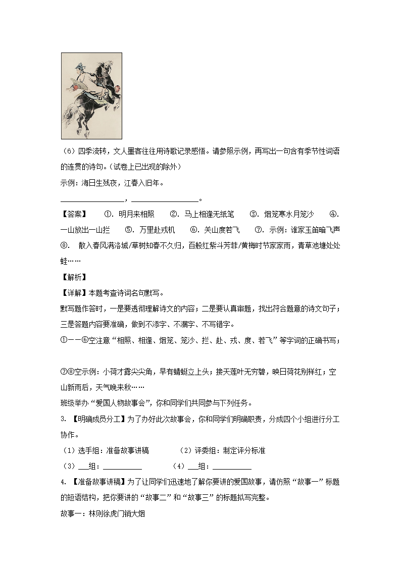 - 2022-2023开云kaiyun(中国)年江苏南京栖霞区七年级下册语文期中试卷及答案
