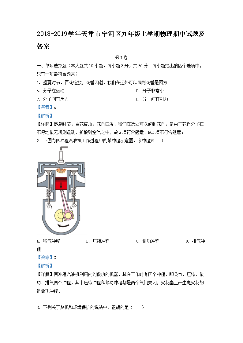 时间:2024-10-25 09:08:00 来源:开云网页版 [字体:小 中 大]【文档名称】 2018-2019开云kaiyun(中国)年天津市宁河区九年级上开云kaiyun(中国)期物理期中试题及答案(Word版).doc