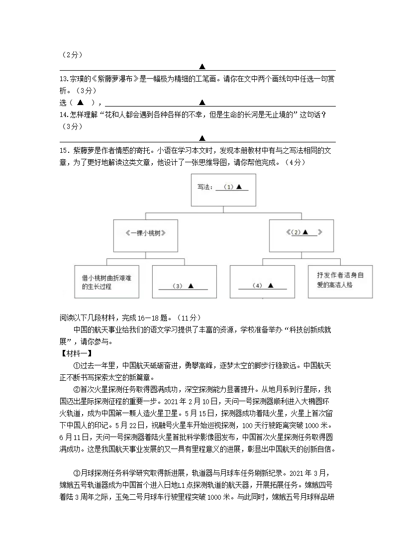 - 2021-2022开云kaiyun(中国)年江苏南京玄武区七年级下册语文期末试卷及答案