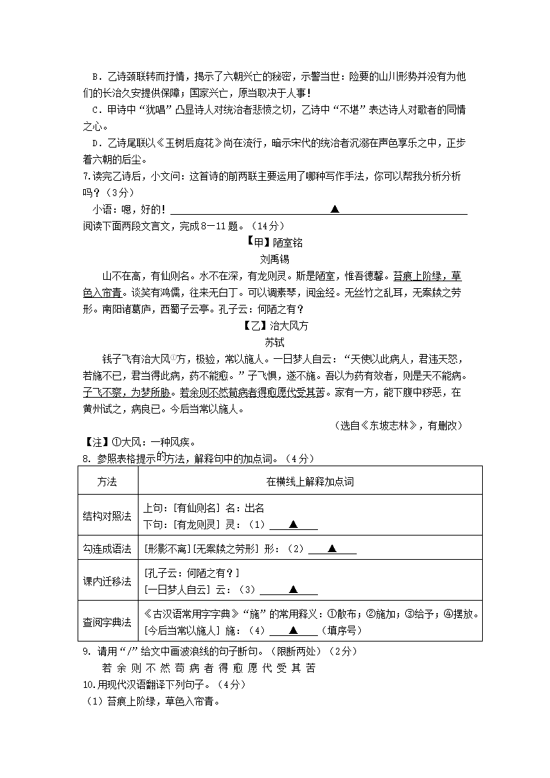 【文档名称】 2022-2023开云kaiyun(中国)年江苏南京鼓楼区七年级下册语文期末试卷及答案(Word版).doc