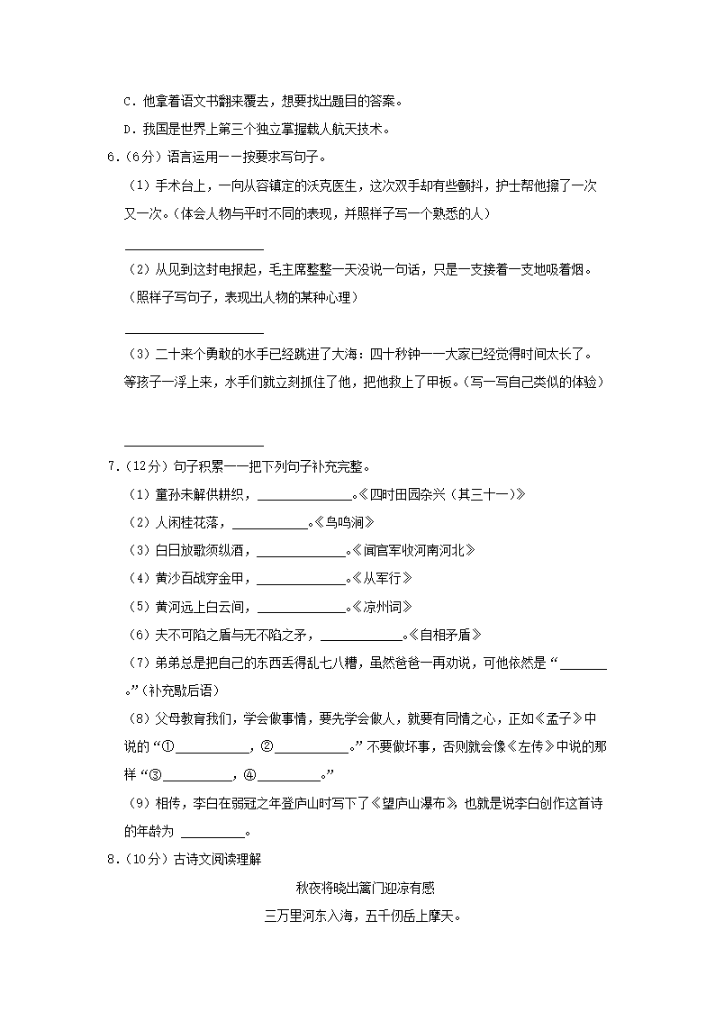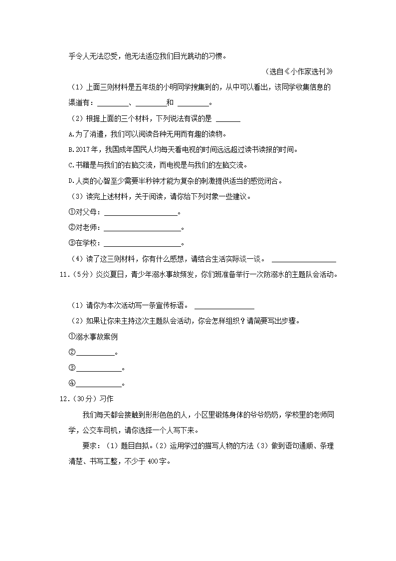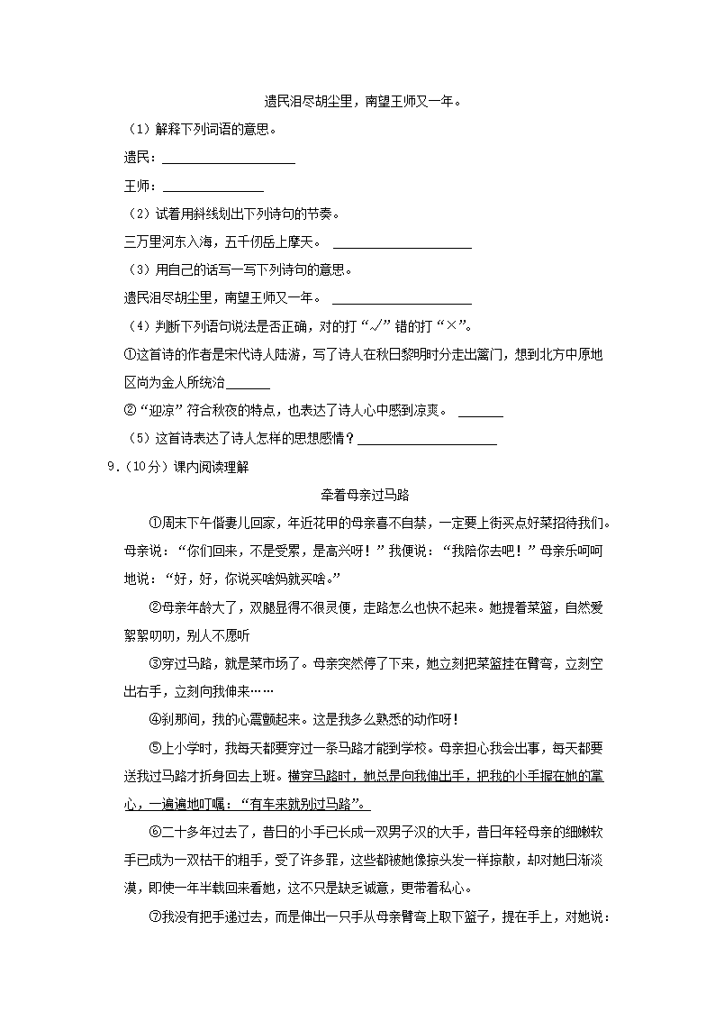- 2022-2023开云kaiyun(中国)年浙江嘉兴经开区五年级下册语文期末试卷及答案