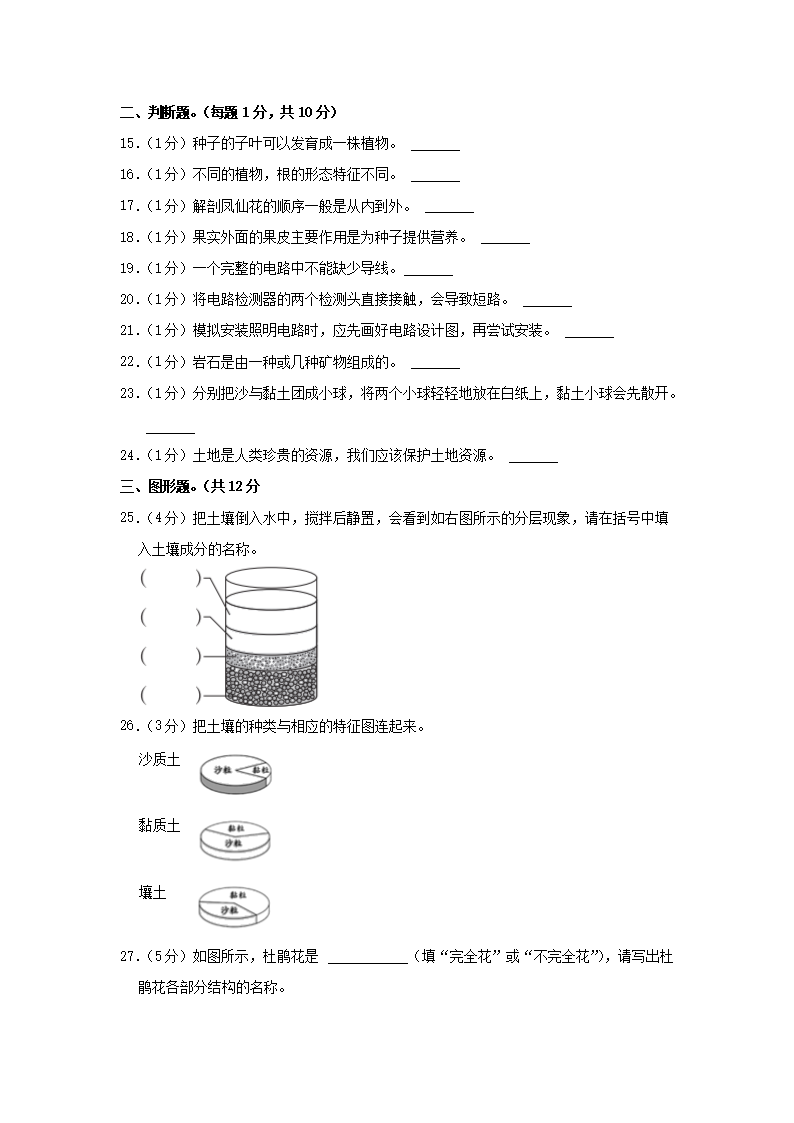 - 2022-2023开云kaiyun(中国)年四川省宜宾市兴文县四年级上开云kaiyun(中国)期期末科开云kaiyun(中国)真题及答案