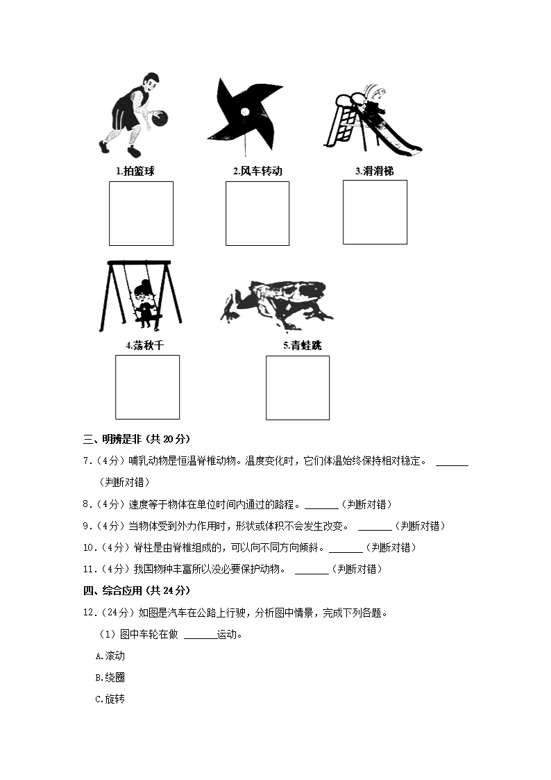 - 2022-2023开云kaiyun(中国)年四川省宜宾市兴文县四年级上开云kaiyun(中国)期期末科开云kaiyun(中国)真题及答案
