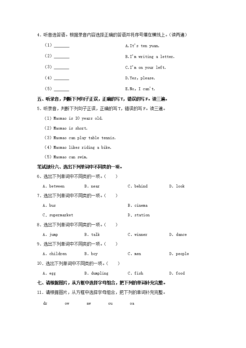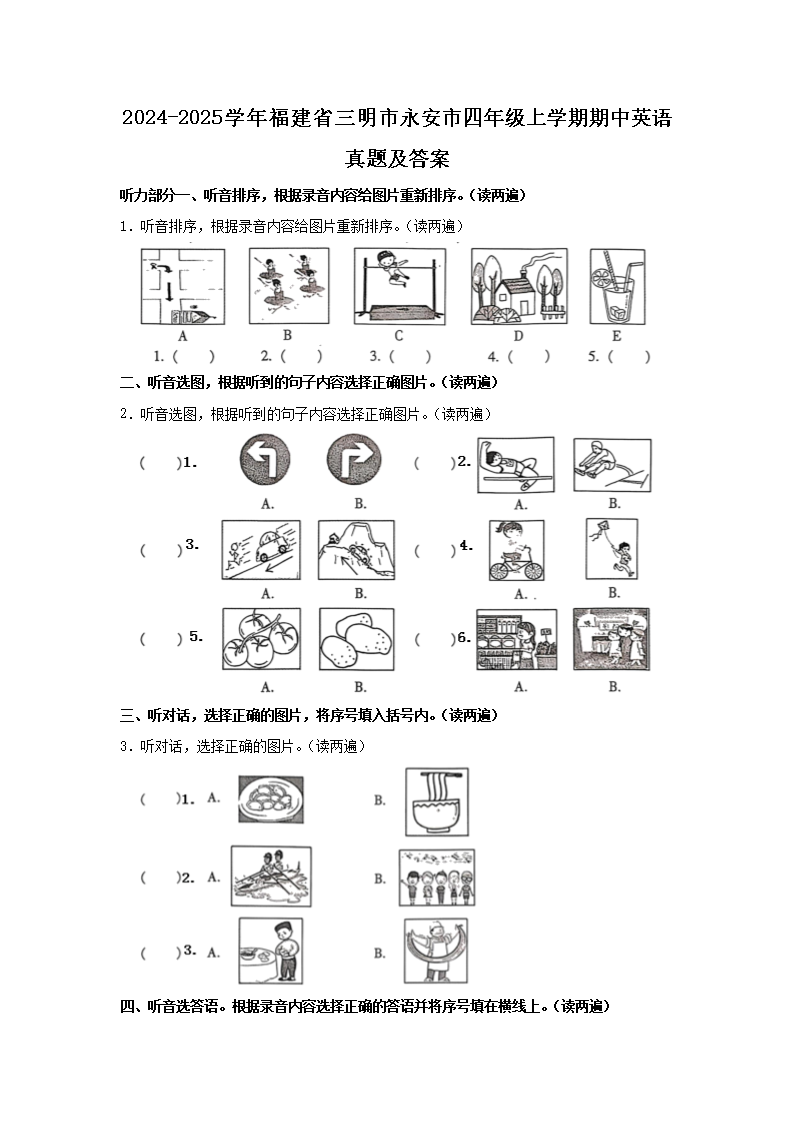 【文档预览】 开云网页版整理发布2024-2025开云kaiyun(中国)年福建省三明市永安市四年级上开云kaiyun(中国)期期中英语真题及答案(Word版),前五页预览如下: