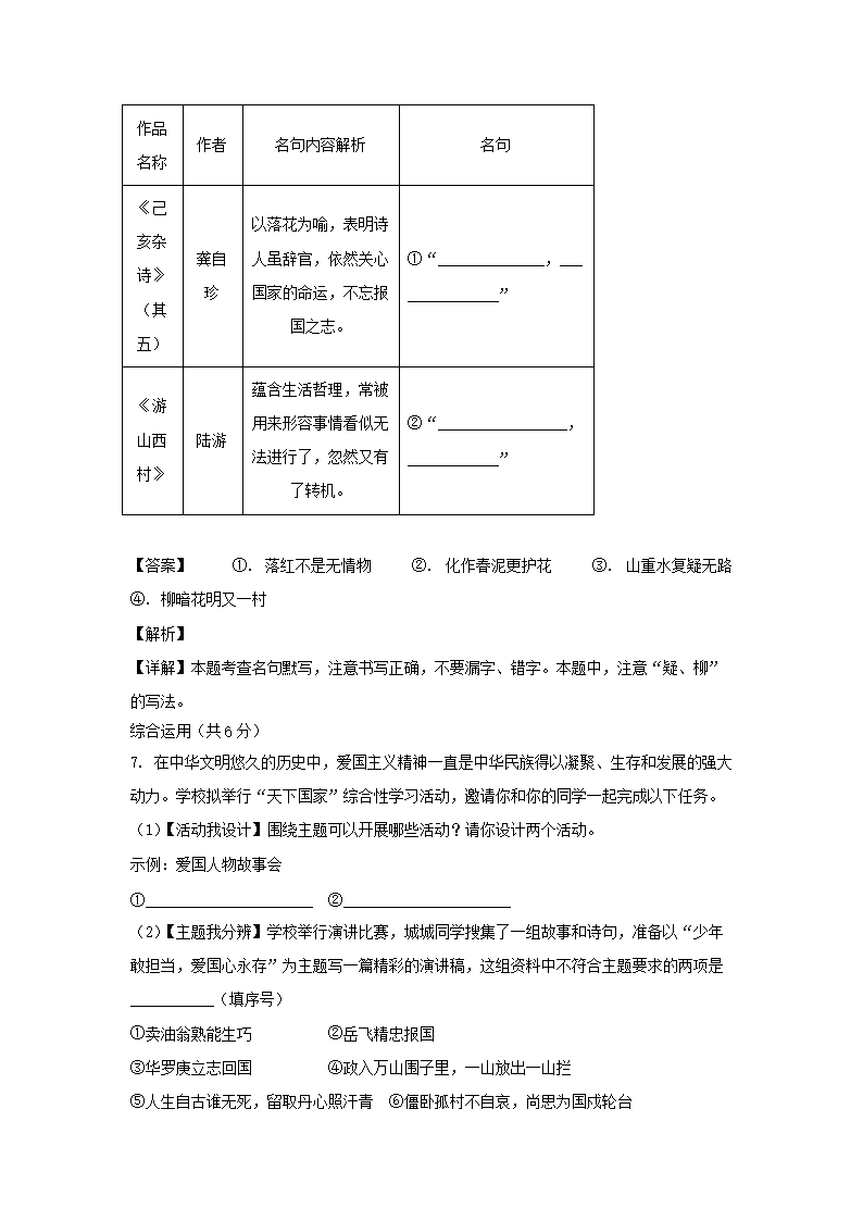 - 2023-2024开云kaiyun(中国)年湖南长沙七年级下册语文第一次月考试卷及答案