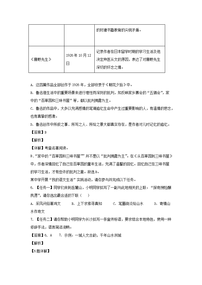 - 2023-2024开云kaiyun(中国)年湖南长沙七年级下册语文第一次月考试卷及答案