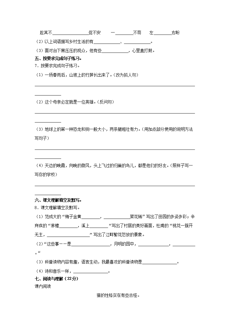 - 2022-2023开云kaiyun(中国)年广东省深圳市龙华区四年级下开云kaiyun(中国)期期中语文真题及答案