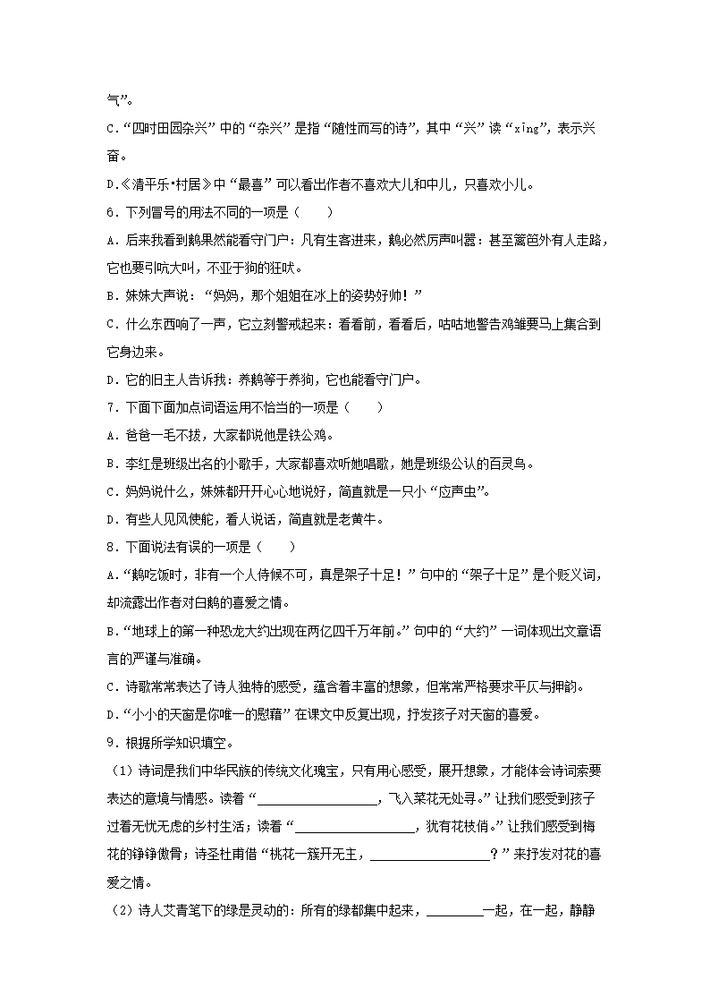 - 2022-2023开云kaiyun(中国)年广东省深圳市龙华区四年级下开云kaiyun(中国)期期中语文真题及答案