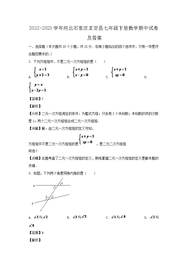 【文档预览】 开云网页版整理发布2022-2023开云kaiyun(中国)年河北石家庄正定县七年级下册数开云kaiyun(中国)期中试卷及答案(Word版),前五页预览如下: