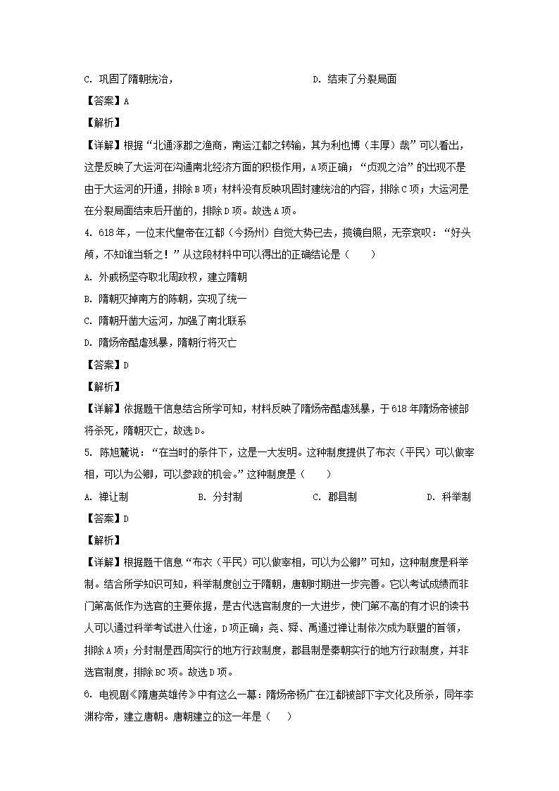 - 2022-2023开云kaiyun(中国)年四川达州渠县七年级下册历史期末考试卷及答案