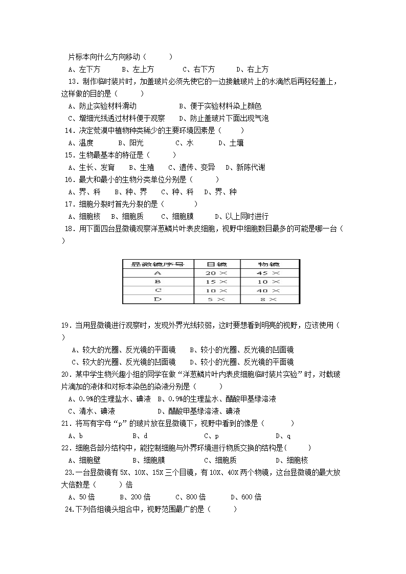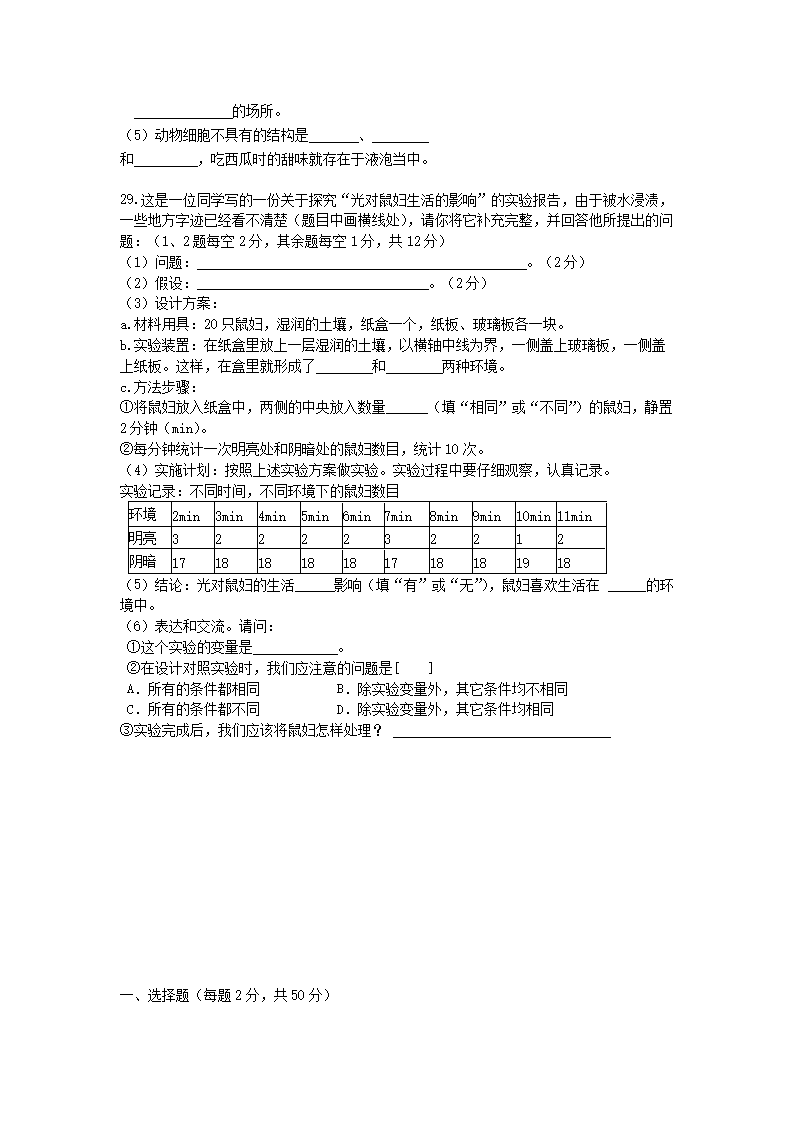- 2021-2022开云kaiyun(中国)年四川成都大邑县七年级上册生物期中试卷及答案