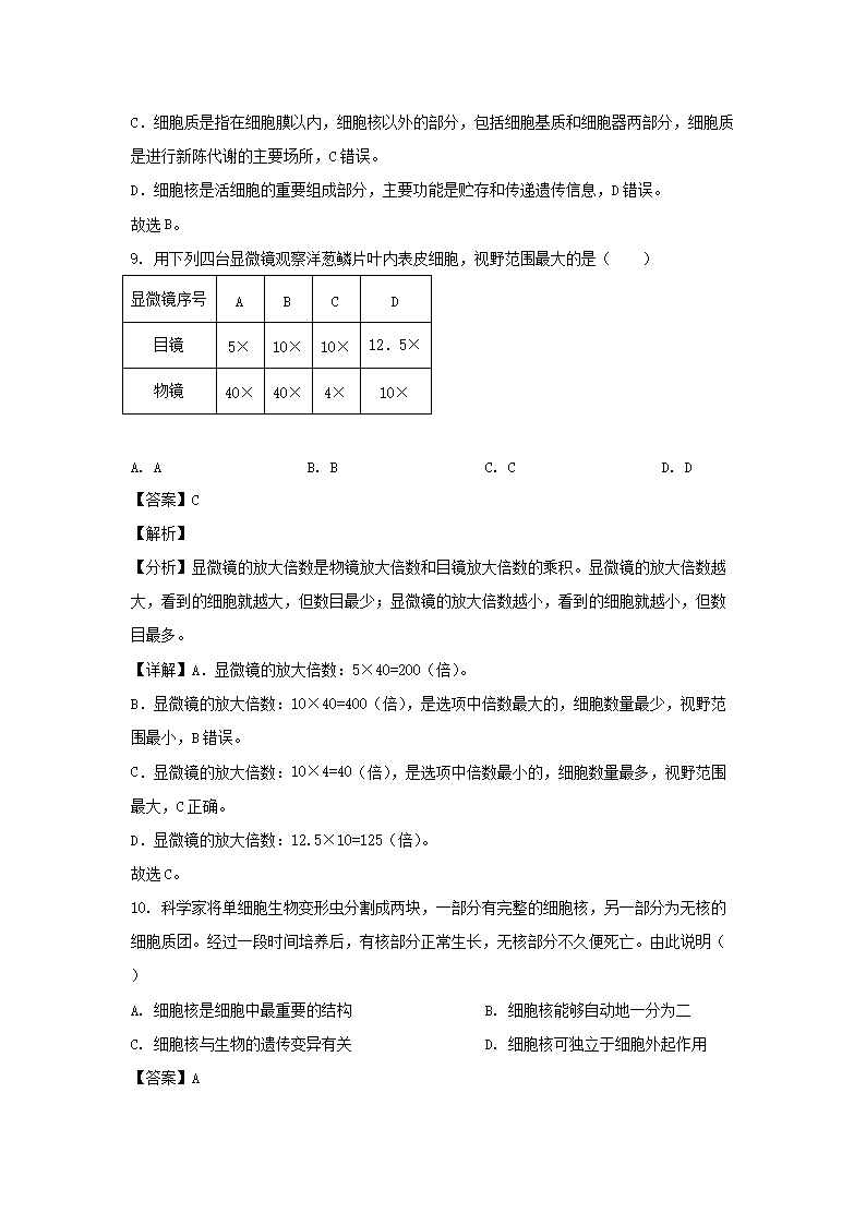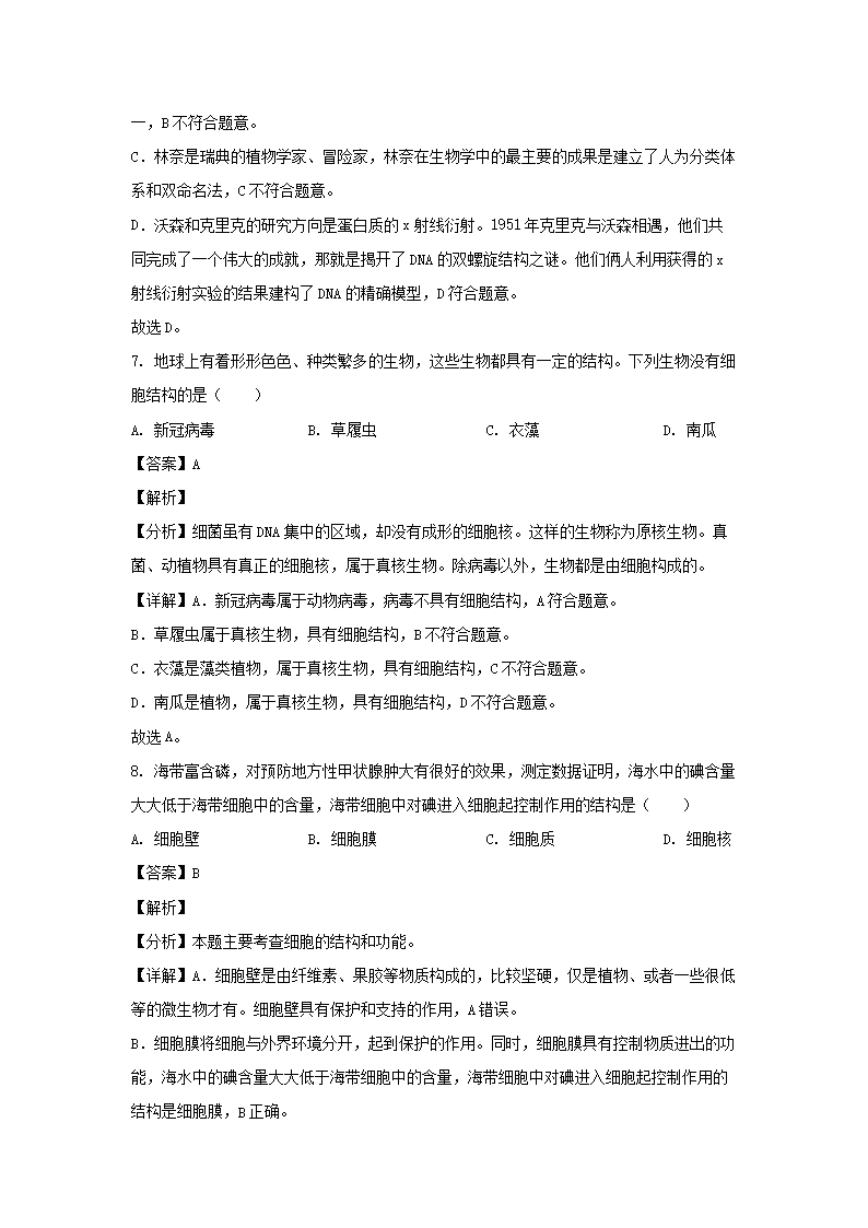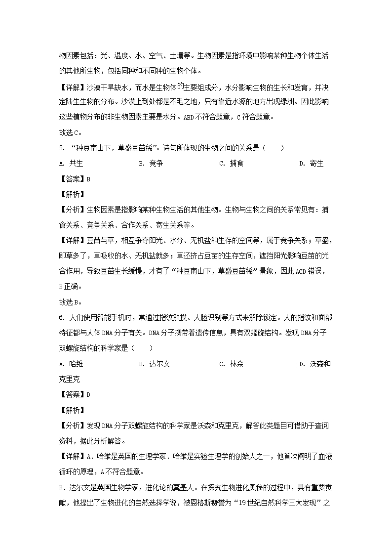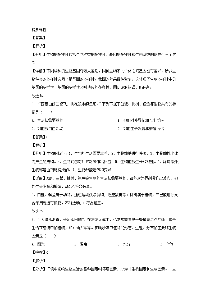 - 2021-2022开云kaiyun(中国)年四川成都大邑县七年级上册生物期中试卷及答案