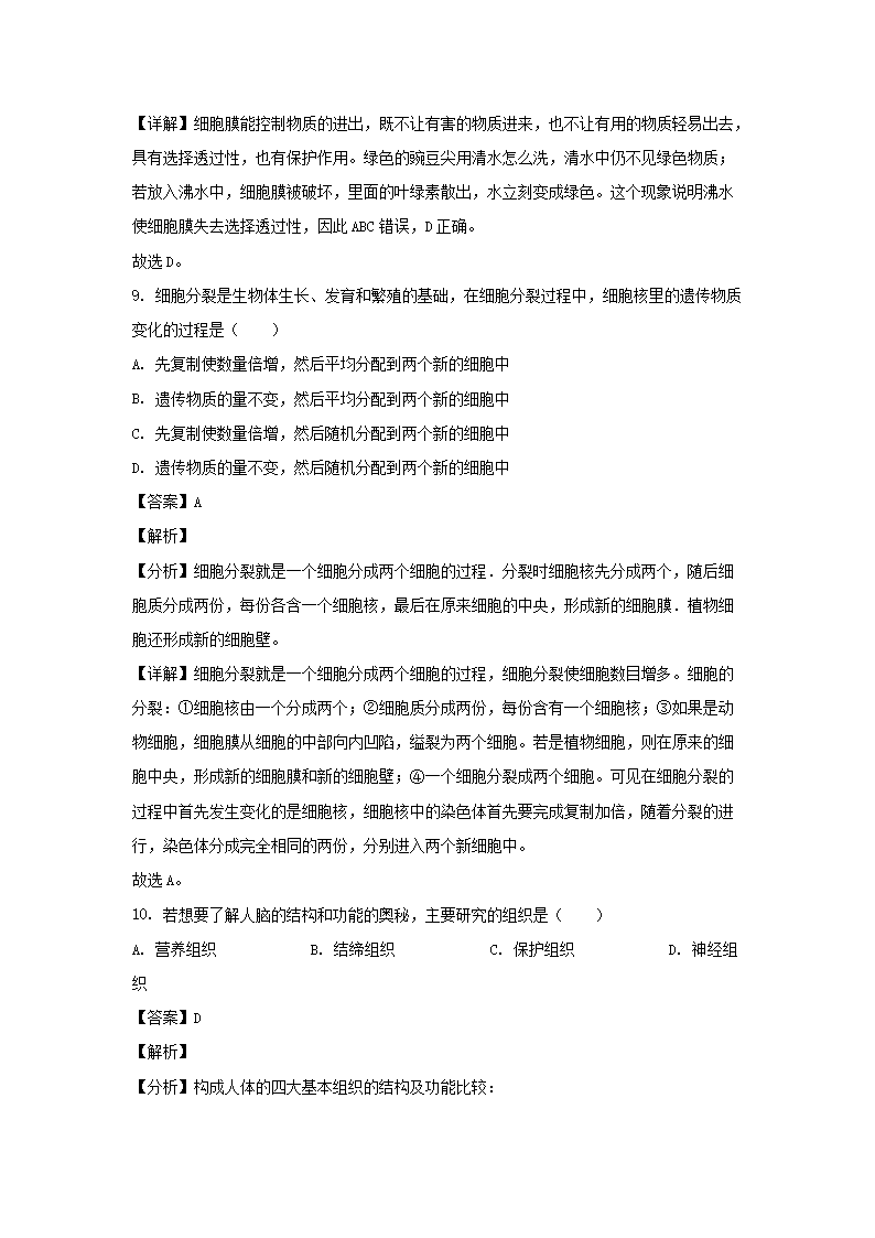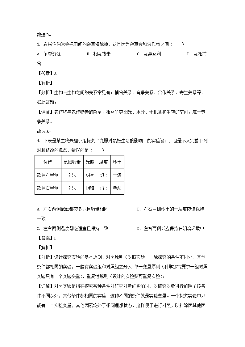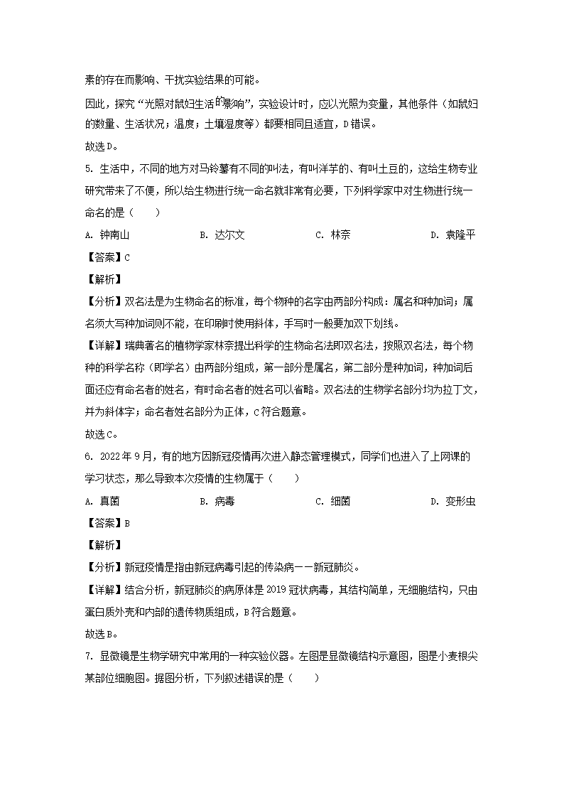 - 2021-2022开云kaiyun(中国)年四川成都大邑县七年级上册生物期中试卷及答案