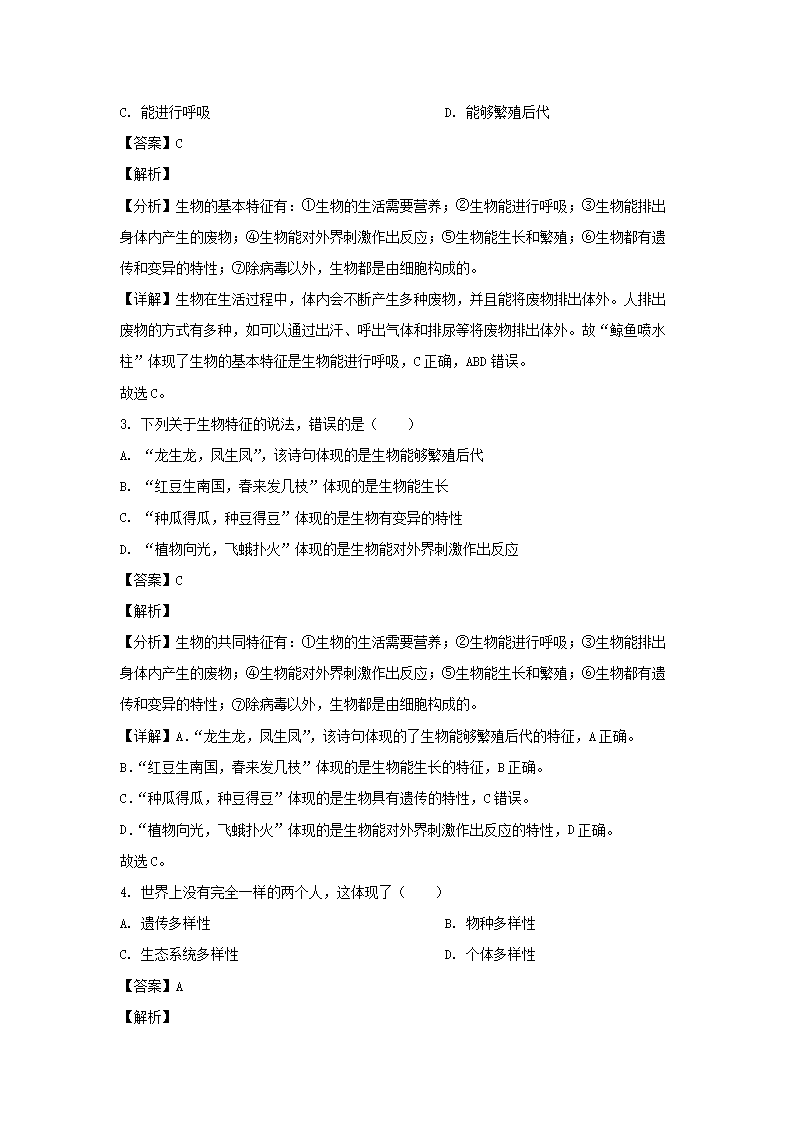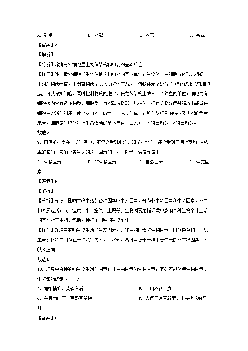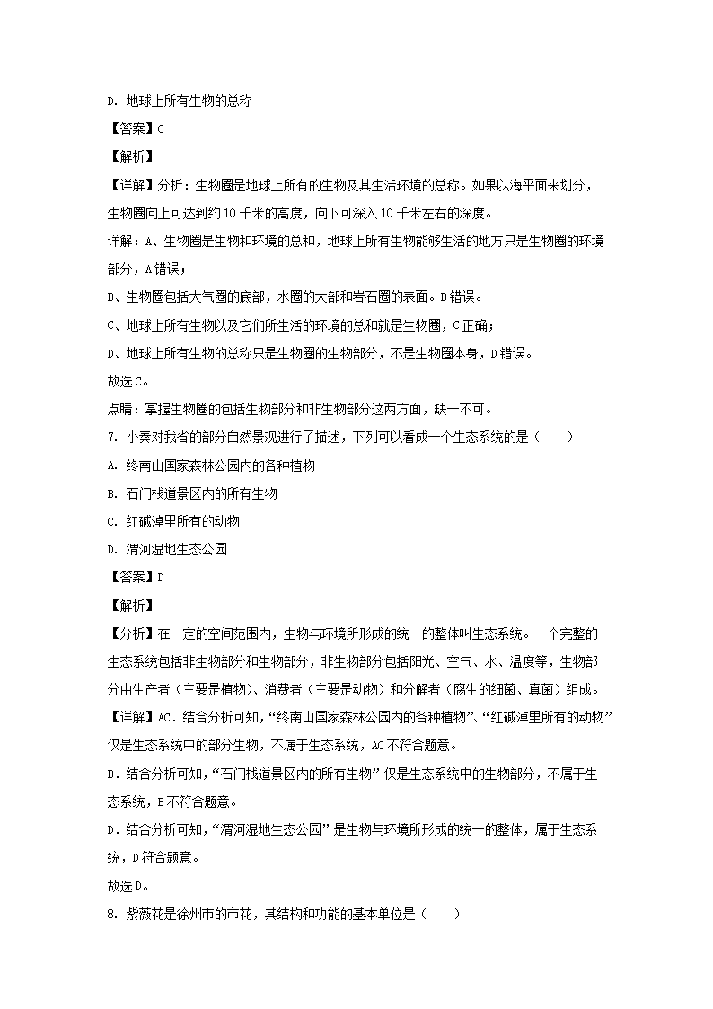 - 2023-2024开云kaiyun(中国)年四川成都武侯区七年级上册生物期末试卷及答案
