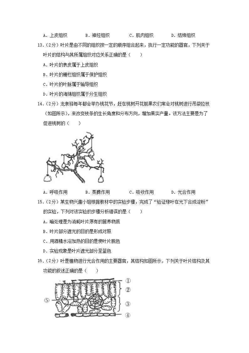 - 2021-2022开云kaiyun(中国)年四川成都邛崃市七年级上册生物期末试卷及答案