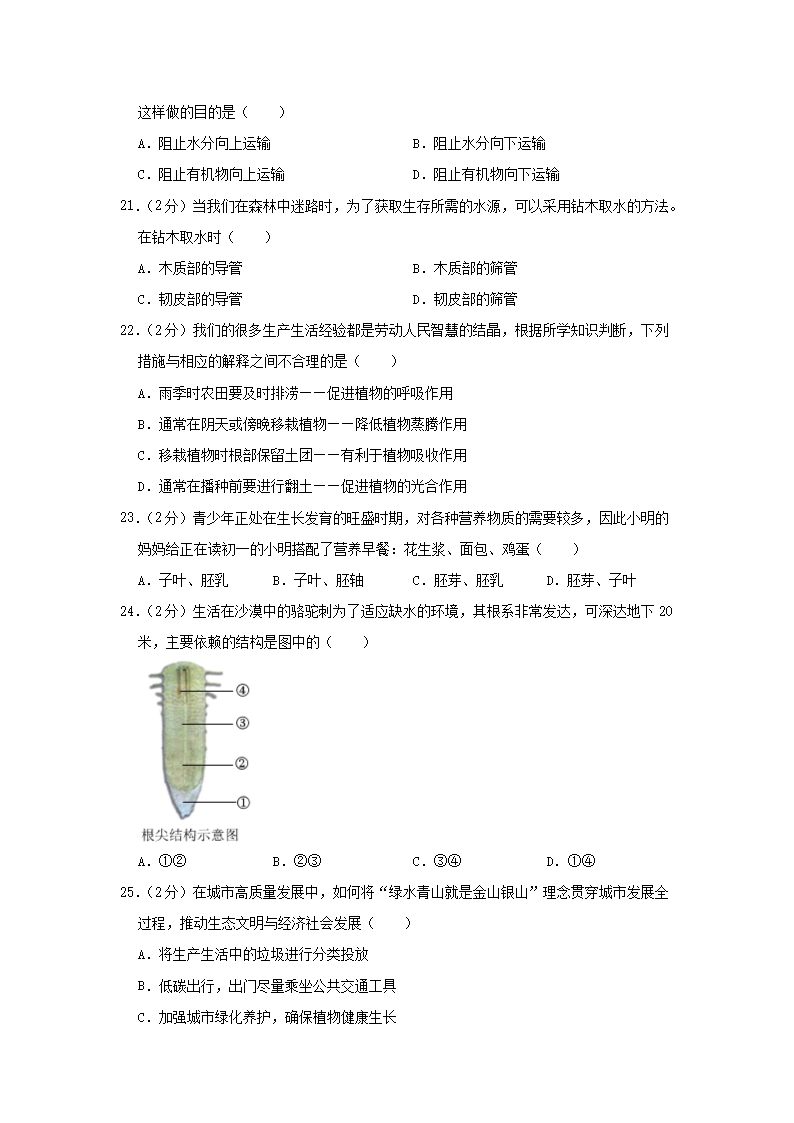 - 2021-2022开云kaiyun(中国)年四川成都成华区七年级上册生物期末试卷及答案