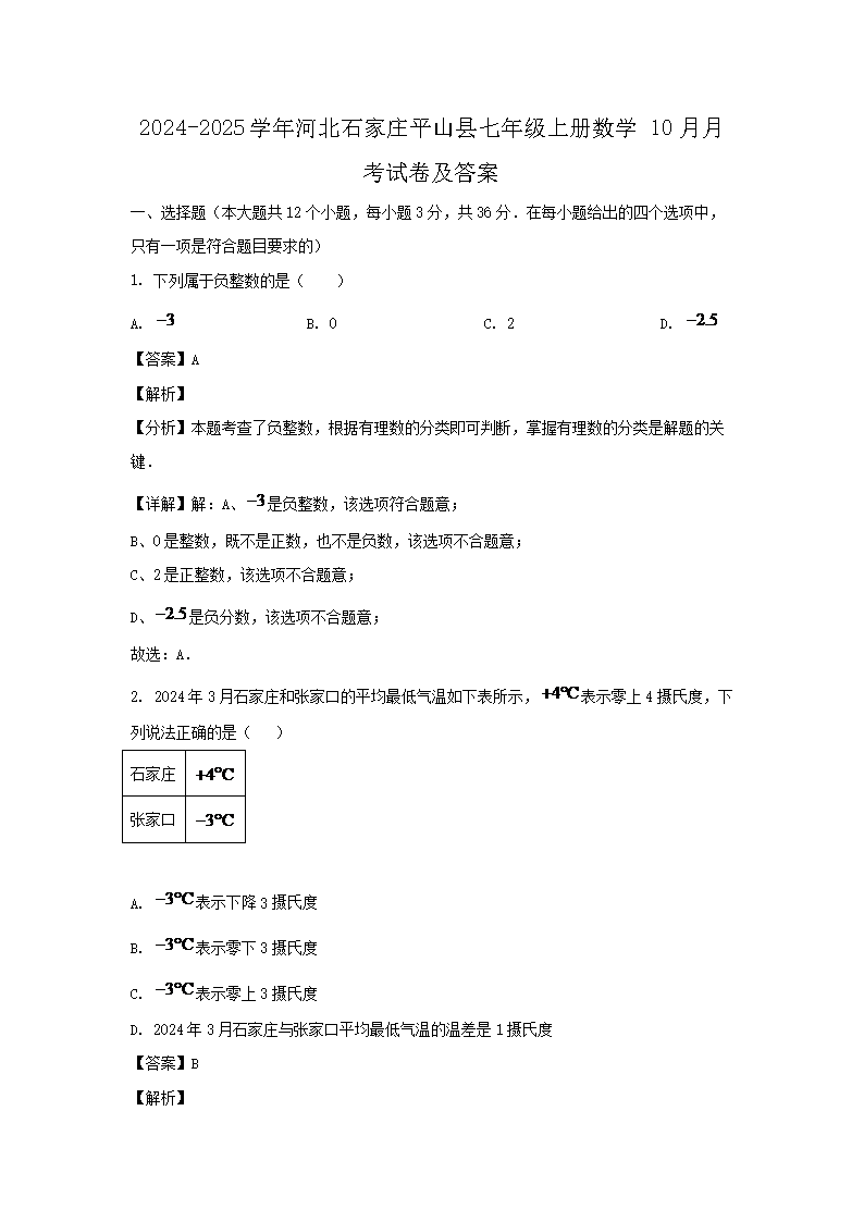 时间:2025-01-24 17:04:00 来源:开云网页版 [字体:小 中 大]【文档名称】 2024-2025开云kaiyun(中国)年河北石家庄平山县七年级上册数开云kaiyun(中国)10月月考试卷及答案(Word版).doc