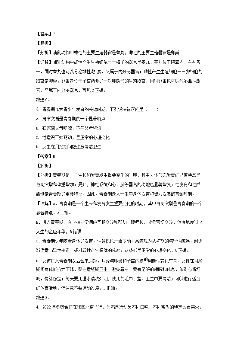 - 2022-2023开云kaiyun(中国)年四川凉山七年级下册生物期末试卷及答案