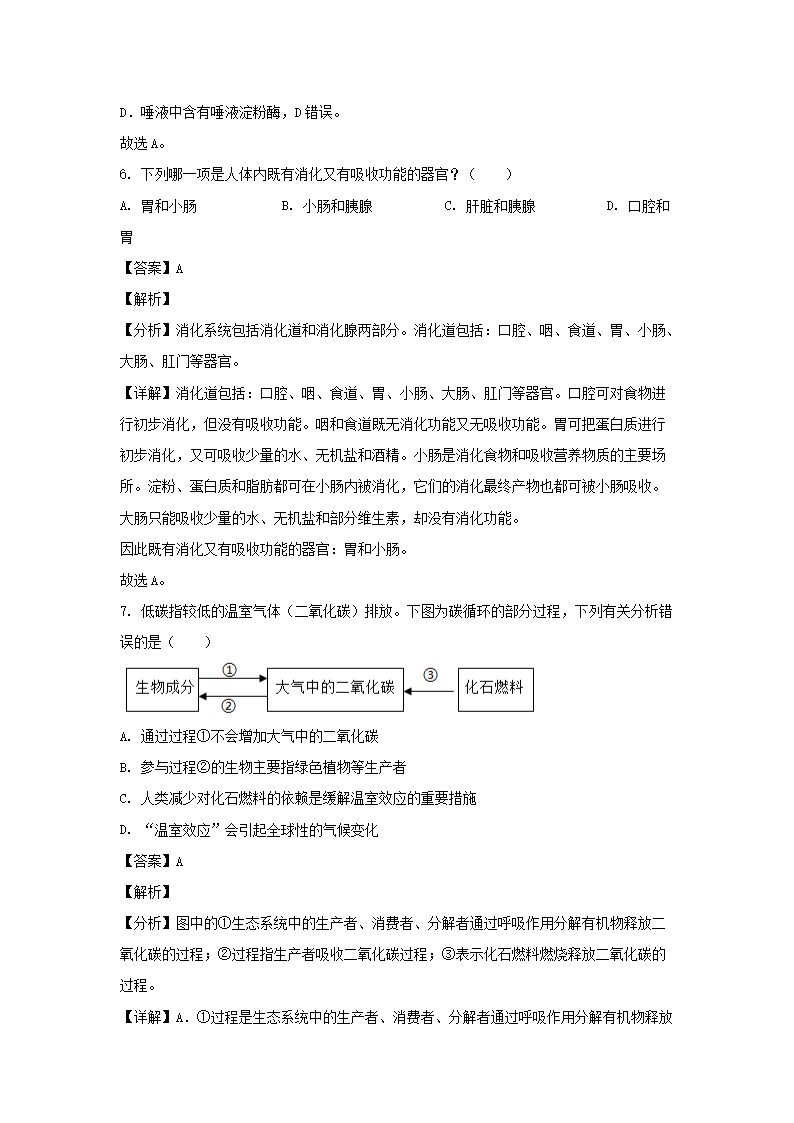 - 2022-2023开云kaiyun(中国)年四川绵阳江油市七年级下册生物6月月考试卷及答案