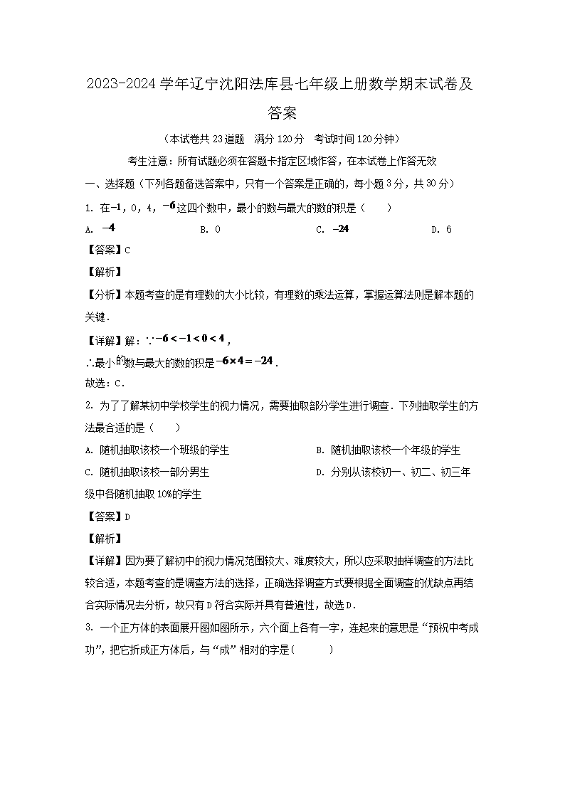 时间:2025-02-10 17:25:00 来源:开云网页版 [字体:小 中 大]【文档名称】 2023-2024开云kaiyun(中国)年辽宁沈阳法库县七年级上册数开云kaiyun(中国)期末试卷及答案(Word版).doc