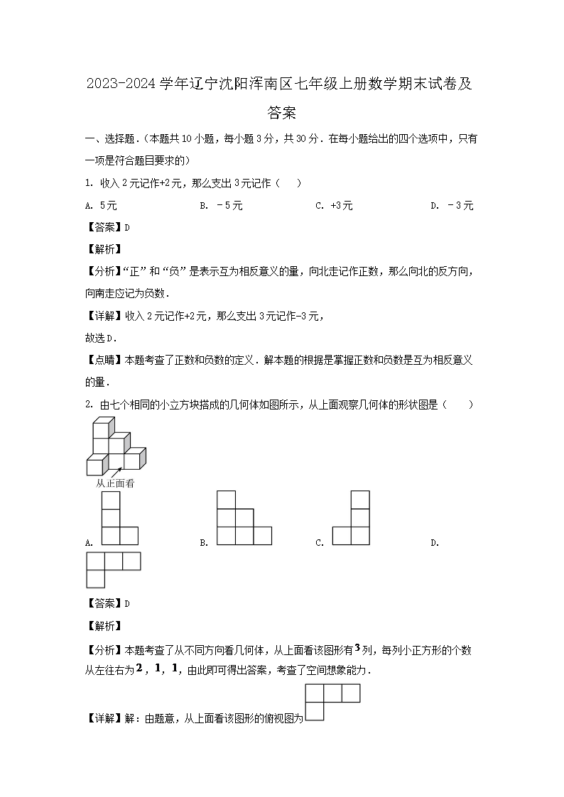时间:2025-02-11 17:25:00 来源:开云网页版 [字体:小 中 大]【文档名称】 2023-2024开云kaiyun(中国)年辽宁沈阳浑南区七年级上册数开云kaiyun(中国)期末试卷及答案(Word版).doc
