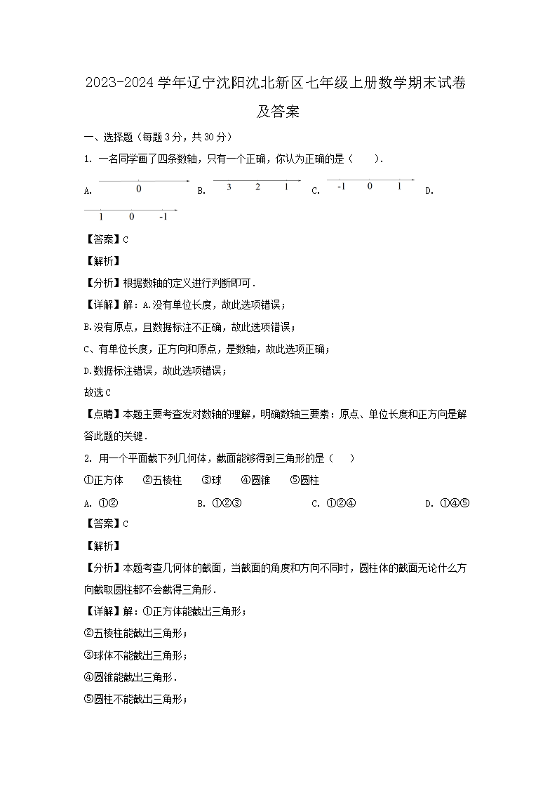 时间:2025-02-11 17:26:00 来源:开云网页版 [字体:小 中 大]【文档名称】 2023-2024开云kaiyun(中国)年辽宁沈阳沈北新区七年级上册数开云kaiyun(中国)期末试卷及答案(Word版).doc