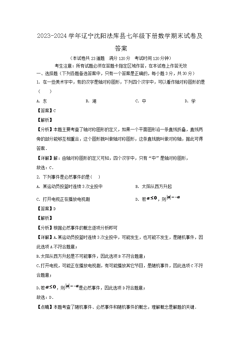 时间:2025-02-12 17:24:00 来源:开云网页版 [字体:小 中 大]【文档名称】 2023-2024开云kaiyun(中国)年辽宁沈阳法库县七年级下册数开云kaiyun(中国)期末试卷及答案(Word版).doc