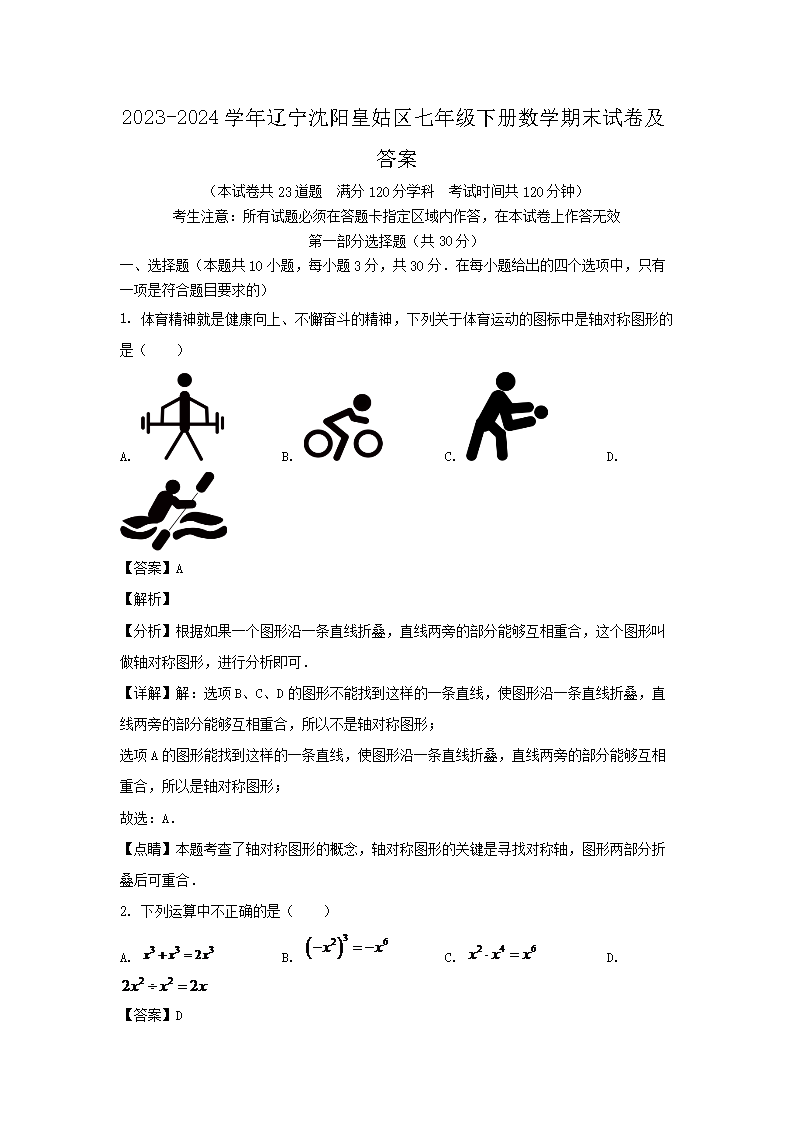 【文档预览】 开云网页版整理发布2023-2024开云kaiyun(中国)年辽宁沈阳皇姑区七年级下册数开云kaiyun(中国)期末试卷及答案(Word版),前五页预览如下: