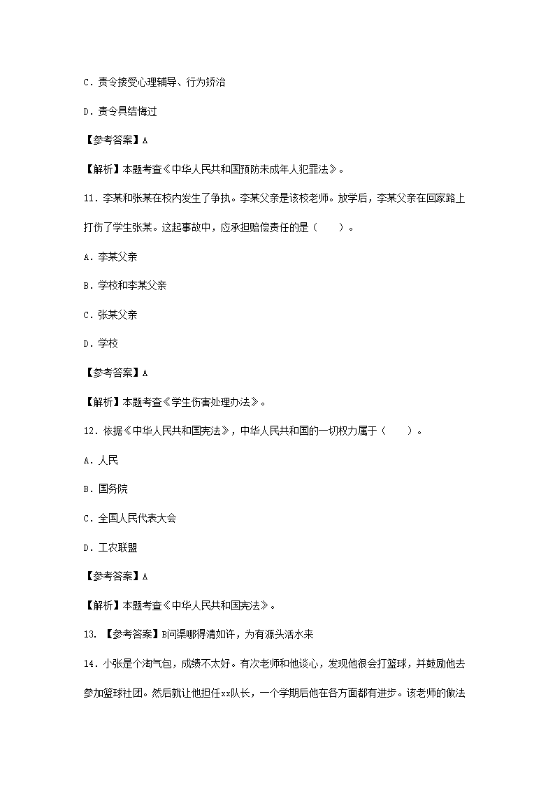 【文档名称】 2024上半年内蒙古教师资格证小开云kaiyun(中国)综合素质真题及答案(Word版).doc