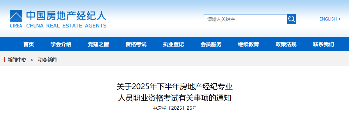 【#房地产经纪人考试# #2025年下半年房地产经纪专业人员职业资格考试有关问题的通知#】®开云网页版从中国房地产经纪人网获悉,2025年下半年房地产经纪专业人员职业资格考试在全国31个省(自治区、直辖市)和5个计划单列市同时举行。报名时间:8月15日-9月10日,考试时间:10月25日-26日,更多事宜请参考阅读《考务通知》,官方公告原文如下: