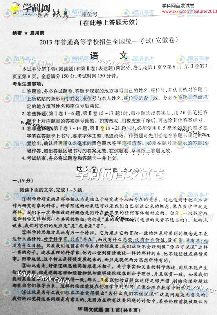 网首发2013高考试题答案,考生进入