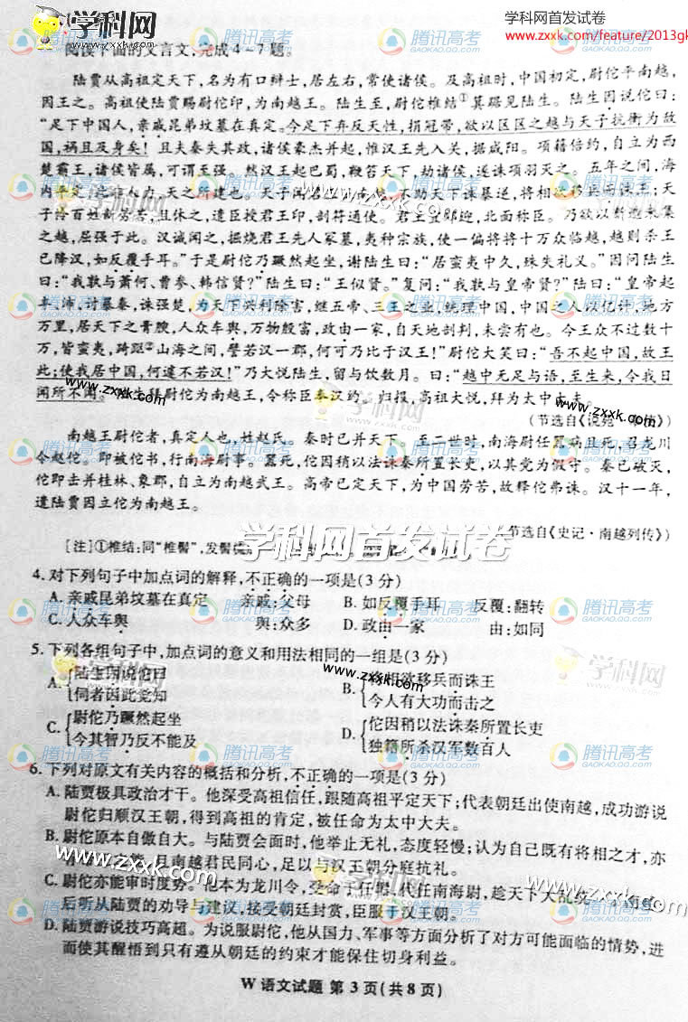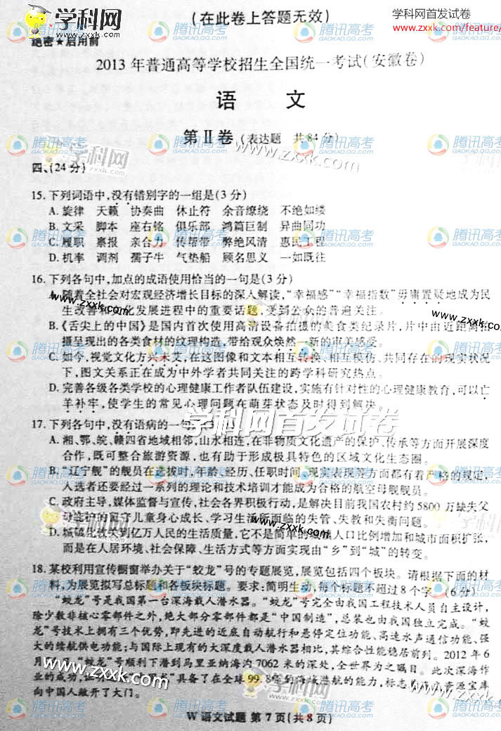 安徽2013年语文高考真题(图片版)