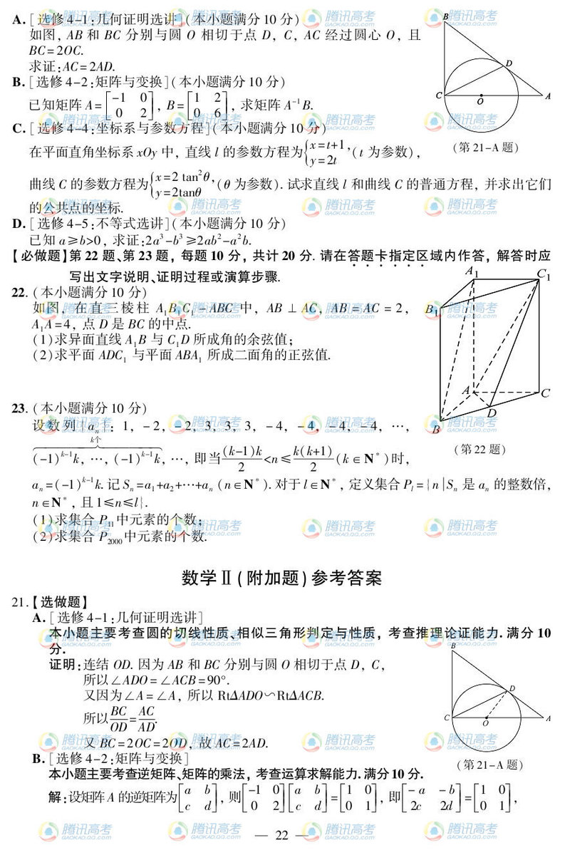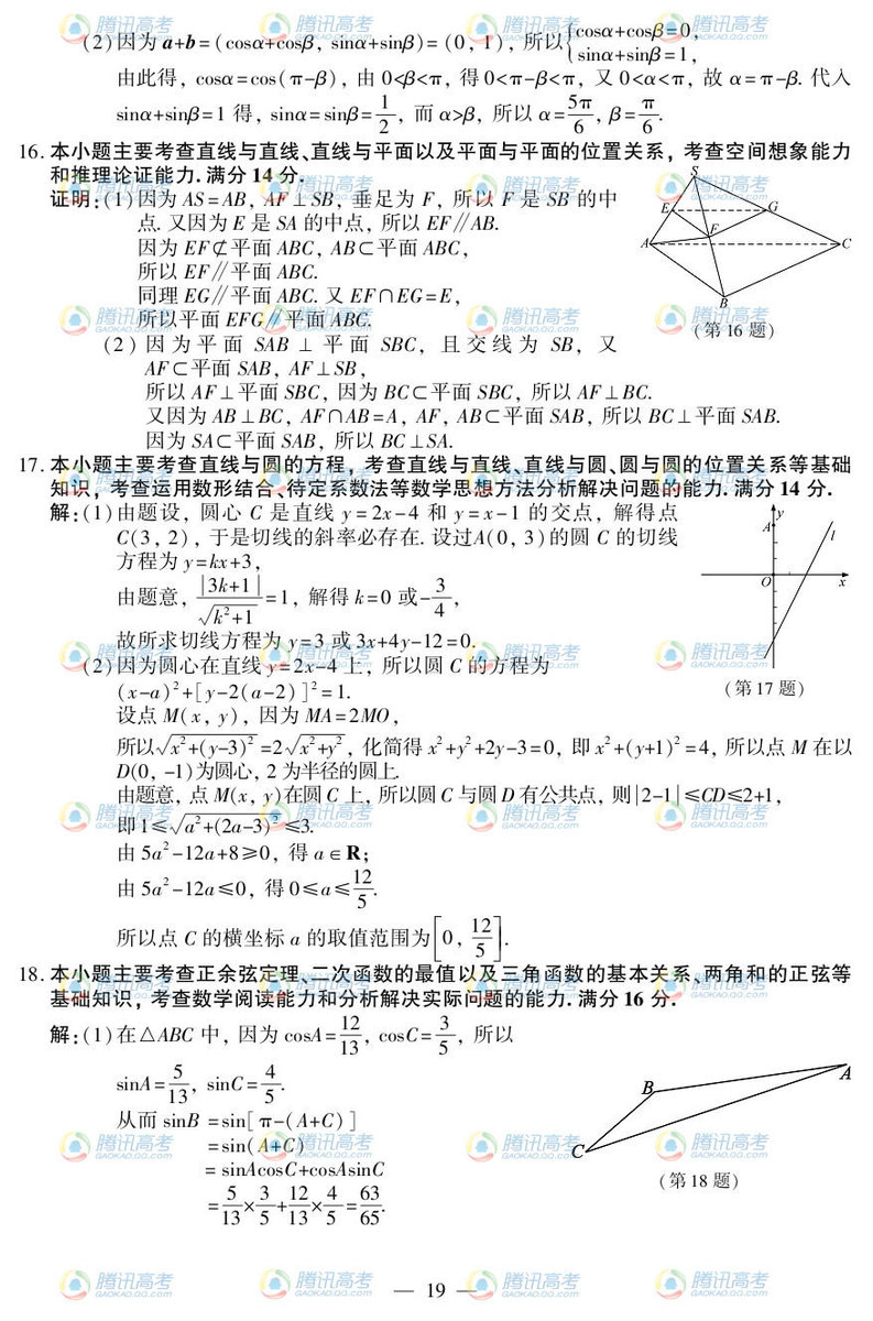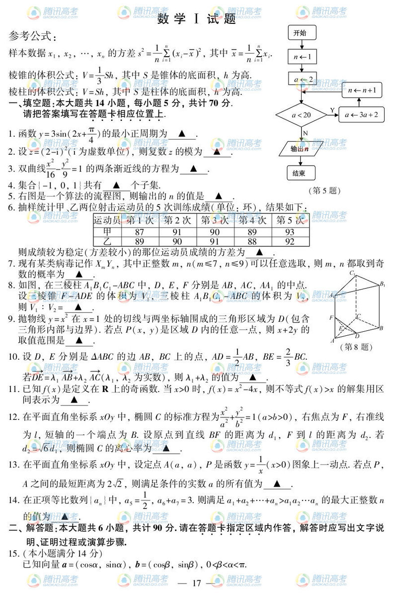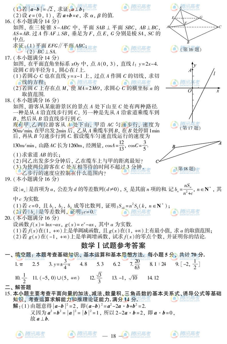 2013江苏高考数开云kaiyun(中国)试题答案(腾讯版)