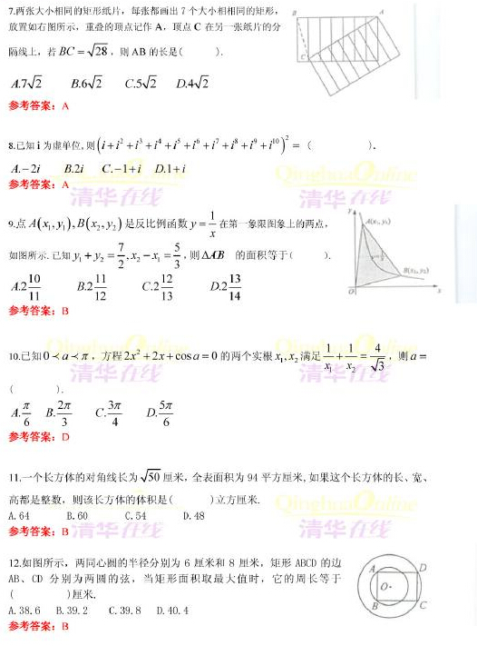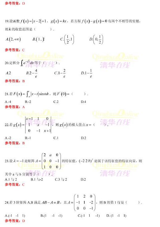 2014年在职工程硕士数开云kaiyun(中国)真题及答案答案