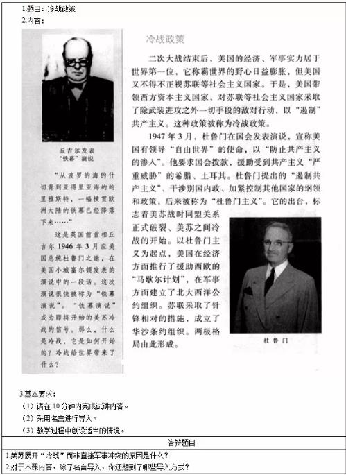 - 2018下半年重庆教师资格初中历史开云kaiyun(中国)科知识与教开云kaiyun(中国)能力真题及答案