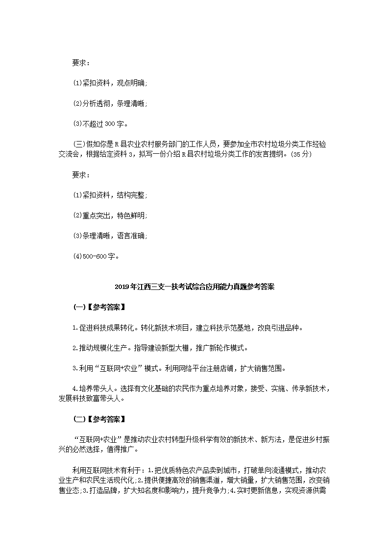 【文档名称】 2019年江西三支一扶考试综合应用能力真题及答案(Word版).doc